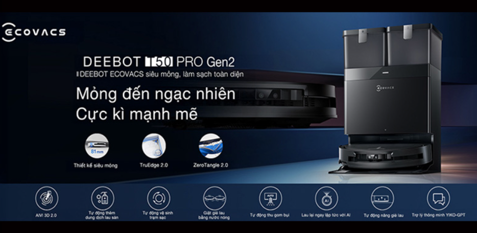 Nếu bạn đang tìm một robot “đúng chuẩn đời mới”: hút cực mạnh – lau chà sạch – đi thông minh – tự động hoá nhiều nhất có thể, thì Ecovacs Deebot T50 Pro Omni Gen 2 (Bản Quốc Tế) là lựa chọn rất đáng cân nhắc.