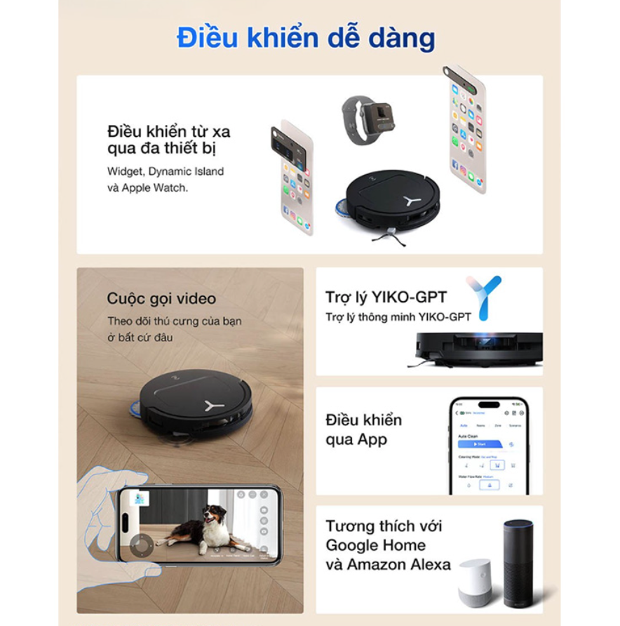 - YIKO-GPT + EcovacsHome: điều khiển tiện, quản lý theo phòng/khu vực rõ ràng