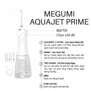 Máy tăm nước MEGUMI AQUAJET PRIME là sản phẩm chăm sóc răng miệng cao cấp nhập khẩu nội địa Nhật Bản, giúp loại bỏ mảng bám, thức ăn thừa hiệu quả mà bàn chải thông thường không làm sạch được. Thiết kế nhỏ gọn, chống nước IPX7, áp lực nước mạnh mẽ nhưng êm ái, phù hợp cho mọi thành viên trong gia đình.