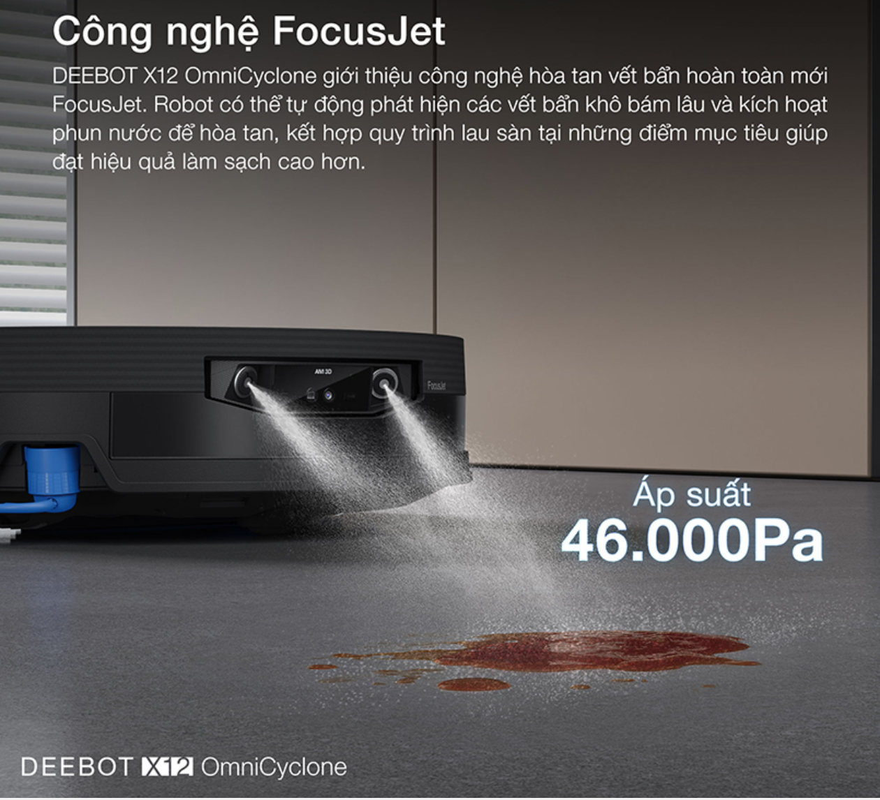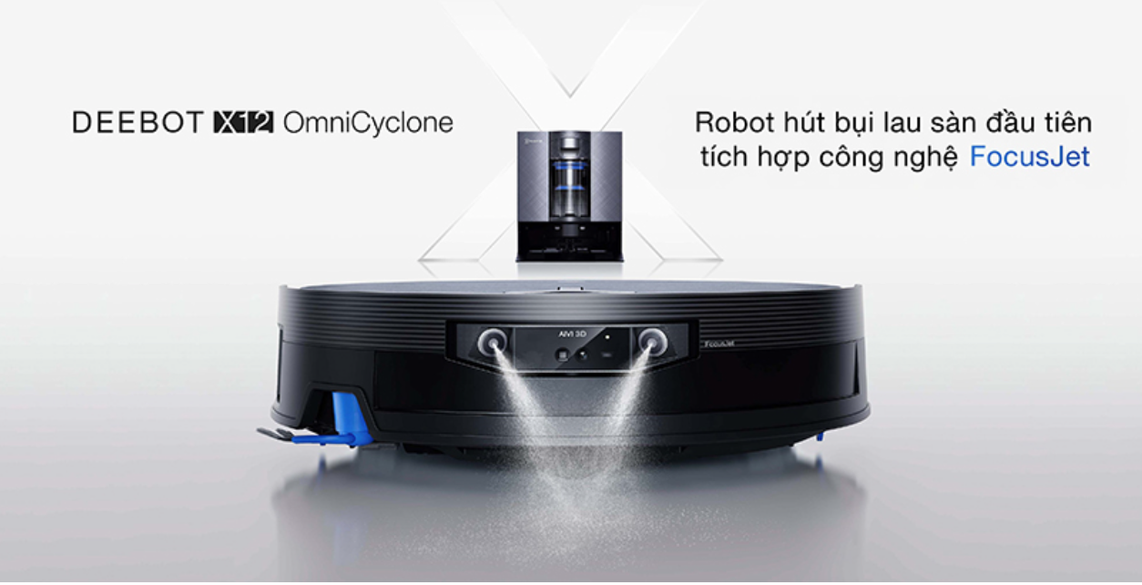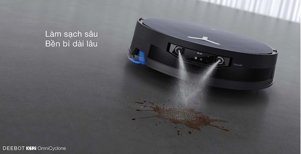 Robot hút bụi lau nhà Ecovacs DEEBOT X12 OmniCyclone – Công nghệ hòa tan vết bẩn trước khi lau FocusJet