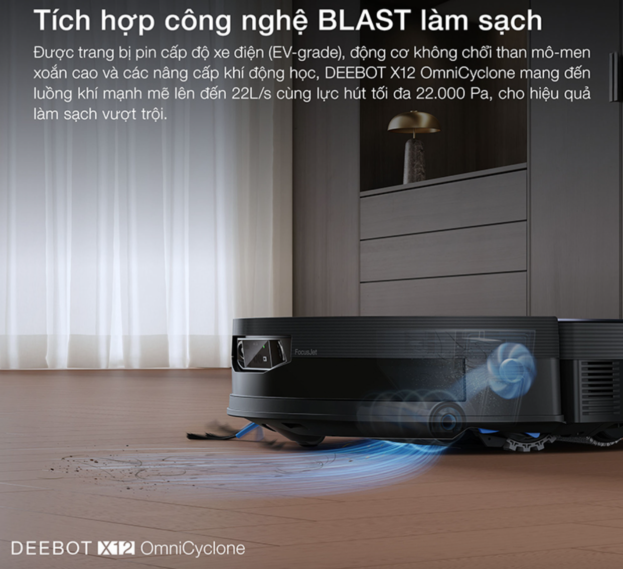 Công nghệ hút lưu lượng lớn tăng cường BLAST trên robot hút bụi Ecovacs X12 OmniCyclone