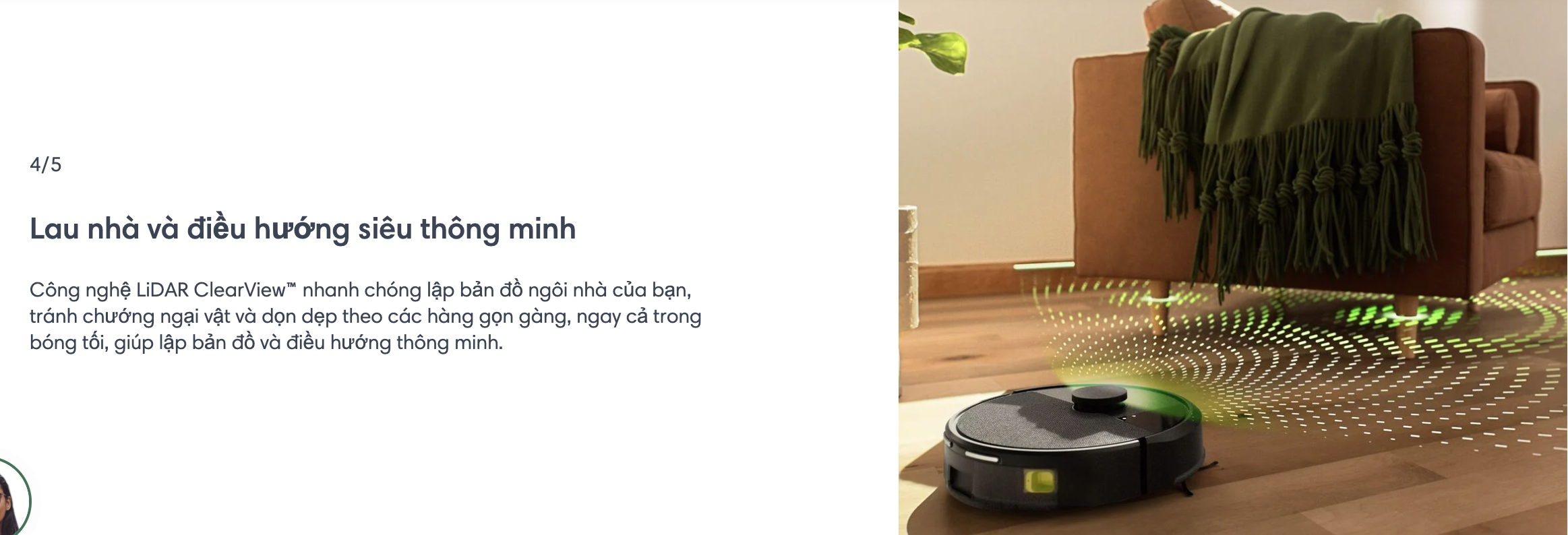 ClearView™ LiDAR nhanh chóng lập bản đồ ngôi nhà của bạn, tránh chướng ngại vật và dọn dẹp theo hàng ngay ngắn, ngay cả trong bóng tối.
